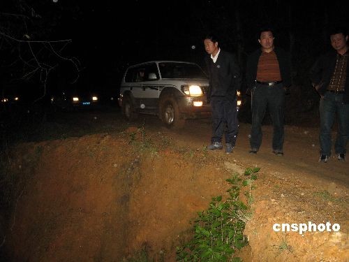 十一月二日凌晨,云南省楚雄彝族自治州楚雄市西舍路乡发生泥石流灾害,现已造成十五人死亡,四十二人失踪,七人受伤,全市十五个乡镇三万七千余人受灾。据介绍,受灾乡镇均处于较远山区,而通往灾区的四条道路均因塌方中断,目前救援人员只能徒步进入灾区,道路抢通工作正在艰难推进。三日凌晨抵达灾区的救援队均为徒步进入,但因通讯不稳定,灾情较重地区与外界联系仍较为困难。一路上塌方随处可见,救援人员通过塌方严重的地方,都必须下车,让车辆慢速通行。图为四日凌晨救援队车辆通过一塌方路段。中新社发 刘子倩 摄