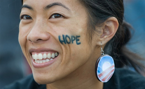 一个女孩脸上写着“希望”
