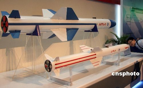 图为由中国航空工业集团公司研制的“天龙”一号、二号导弹在航展上亮相。中新社发 孙自法 摄