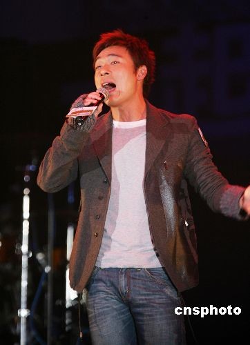 许志安在慈善音乐会上倾情演唱。中新社发 武仲林 摄