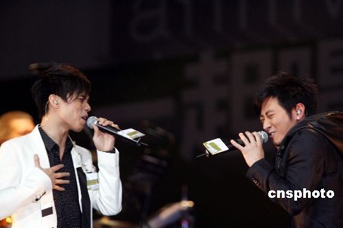 图为张敬轩、孙耀威倾情演唱。中新社发 武仲林 摄