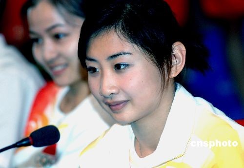图为被誉为中国最美奥运冠军的何雯娜与福州大学的学生们亲切交流。中新社发 刘可耕 摄