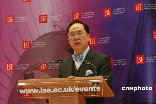 当地时间11月19日下午,香港特区行政长官曾荫权在伦敦政治经济学院,向该校以及来自牛津、剑桥、帝国理工大学、伦敦大学学院等大学的香港留学生发表演讲,向他们介绍香港如何应对经济衰退和香港的发展前景,欢迎他们回港工作。