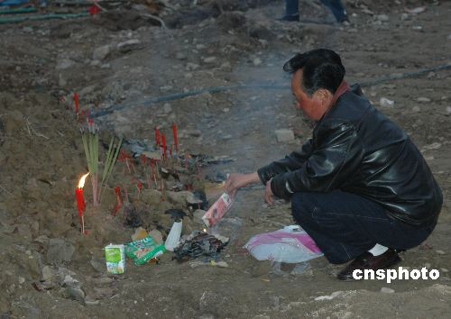 在四川雅江县务工的杨先生,每月都会到北川中学的废墟前祭奠在“512”大地震遇难的女儿。图为11月21日,杨先生星夜兼程从雅江赶赴北川,为17岁的女儿烧去思念。中新社发 肖龙联 摄