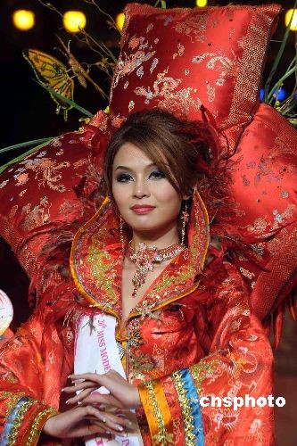 十一月二十二日晚,第二十届世界模特小姐大赛国际总决赛颁奖晚会在深圳民俗文化村举行,来自俄罗斯、美国、英国、法国、德国、意大利、日本等国家和地区的六十一名佳丽角逐本赛冠、亚、季军以及最佳上镜奖、最佳晚装奖、最佳泳装奖等。参赛美丽大使香港、巴西、土耳其小姐获得最佳民族服饰奖。 中新社发 陈文 摄