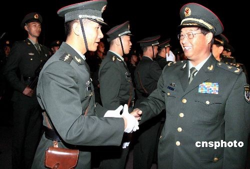 十一月二十五日,解放军驻香港部队进行第十一次建制单位轮换行动。二十五日凌晨,驻军司令员张仕波少将、政治委员刘良凯中将来到新围军营,出席了陆军部队轮换交接仪式。中新社发 张勤 摄