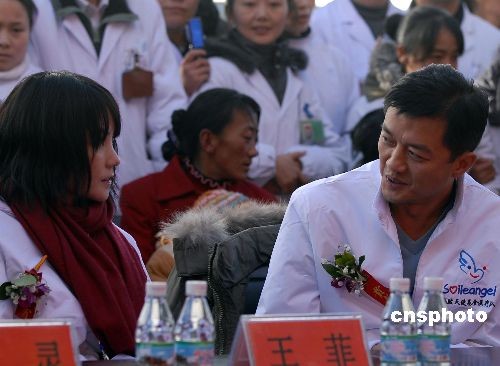 王菲李亚鹏拉萨探访唇腭裂患儿 表现低调(组图)