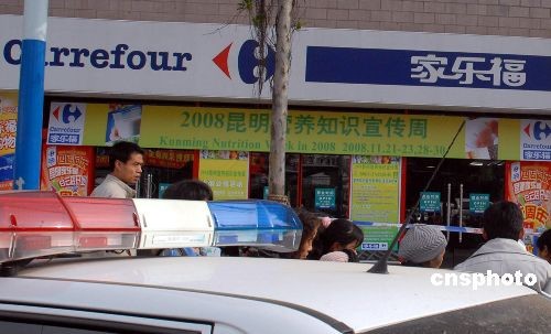 云南昆明家乐福超市发生挟持人质事件 三人受伤