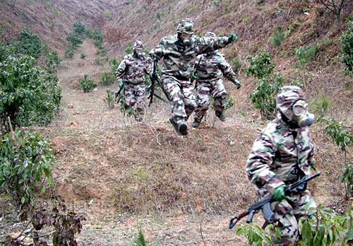 近日,第二炮兵某部把部队拉到野外生疏地域进行了一场实兵实装综合演练。官兵们在高山峡谷间摆开阵势,他们紧贴实战需要突出战法对抗,强化装备的全功能使用训练,使部队在复杂条件下的快速反应、整体协同、有效防御、应急抢修和准确打击能力得到明显增强。