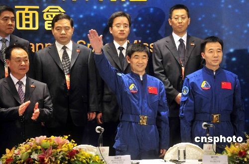 图为航天员刘伯明(右二)、景海鹏(右)。中新社发 谭达明 摄