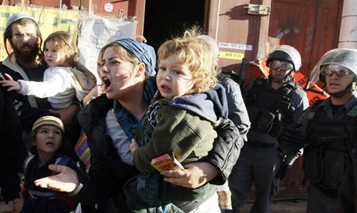12月4日,以色列警察和军队强行搬迁住在希伯伦一处名为“红房子”的建筑内的犹太定居者。当地犹太人于2007年3月占据了这栋楼房,并声称他们通过合法手段将其购置,但原先居住在此的巴勒斯坦房主予以否认。以色列最高法庭11月16日判决,住在这栋房子里的20余户犹太定居者须在72小时内撤离,否则将强行搬迁。