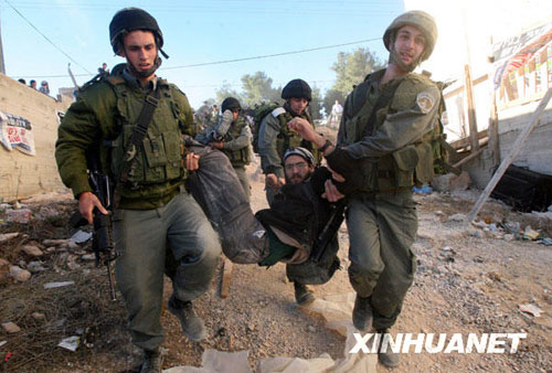 12月4日,在约旦河西岸城市希伯伦,以色列警察将一名犹太定居者抬出住所。新华社发 马蒙·沃兹摄