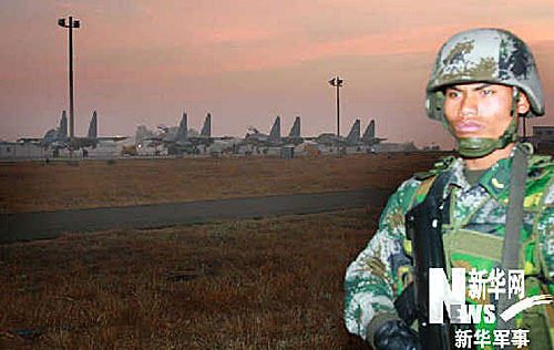 我们的IL-76运输机就停在这些苏-30战斗机旁边。新华军事记者 李刚 摄