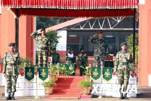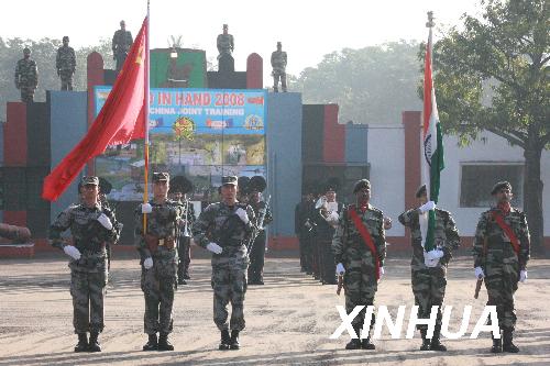 印度当地时间12月6日上午9时30分,在印度贝尔高姆地区举行的“携手-2008”中国和印度陆军联合反恐训练正式开始。