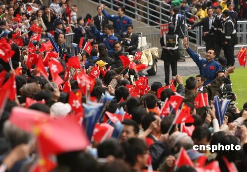 香港大汇演全场观众热烈欢迎“神七”三雄入场
