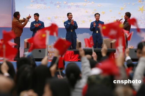 香港大汇演全场观众热烈欢迎“神七”三雄入场