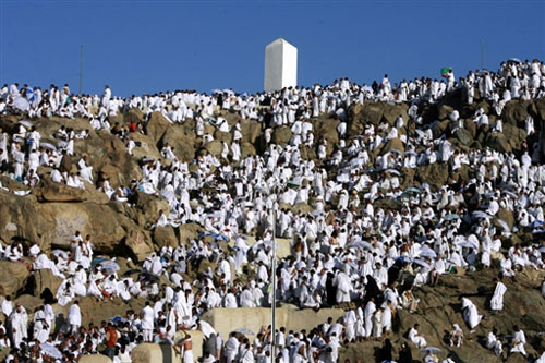 身穿白袍的穆斯林前往米纳谷的一座帐篷城,然后于7日抵达阿拉法特山,把朝圣活动带到高潮。阿拉法特山是先知穆罕默德最后宣道的地方。在阿拉法特山祈祷之后,朝圣者将向米纳的墙壁扔石头,象征驱赶魔鬼。人们在8日开始“宰牲节”,随之结束朝圣。