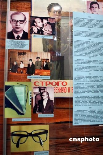 俄罗斯“反军事间谍行动九十周年”展近日正在莫斯科举行,首度向社会公开许多鲜为人知的反间谍实物和档案资料。图为被西方招募的苏联间谍使用的藏有毒药的眼镜和传递的秘密文件图片。