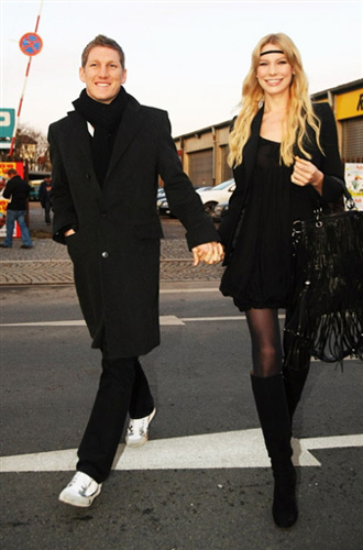 图为拜仁慕尼黑队球员施魏因施泰格携名模女友来到马戏团。