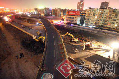 昆明一座立交桥拆迁部分垮塌造成1死4伤(图)