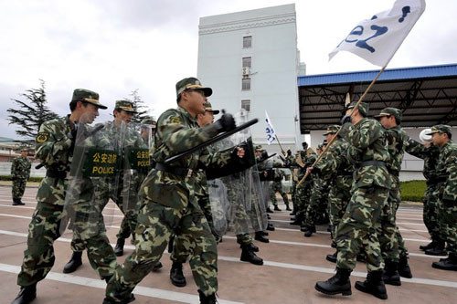 防暴队员在进行防暴课目训练
