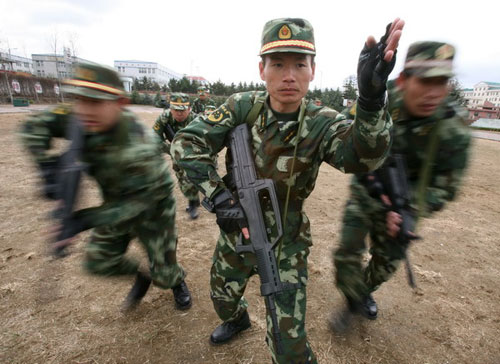 防暴队员在进行战术合成课目训练