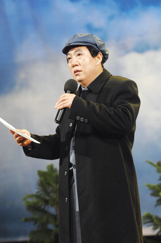 现场的特型演员大都身着军装或中山装,颜长富则还戴了顶八角帽。在集体亮相时,颜长富站在靠中间的位置,相比其他都很挺拔的“主席”,他显得有点瘦小。不过他军装外面还套着呢子大衣,头戴八角帽,不但弥补了身材差距,还格外抢镜,“主席”派头和气势十足。