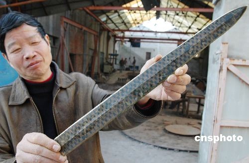2008年12月9日,有着“天下第一剑”之称的越王勾践剑在苏州开始还原铸造。当日,苏州工艺美术大师金海鸥历经8年上百次的试验铸造后,首次依照古代制剑流程还原“越王勾践剑”。新铸的勾践宝剑为青铜质地,剑长55.7厘米,剑宽为4.6厘米,重约1000克,与原剑重量大小基本相同。