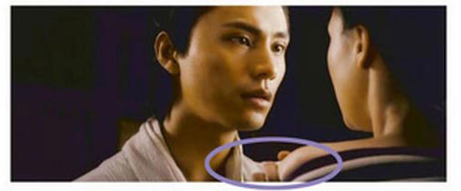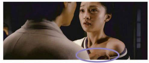 小唯告诉王生自己不要名分,只要做王生的女人,说着就要脱衣服,王生赶紧伸手制止,这个角度拍摄时,王生的手是抓着小唯的衣服的。