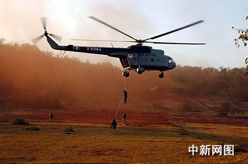 正在印度贝尔高姆举行的“携手—二00八”中印陆军反恐联合训练十一日进入第三阶段。中新社记者 孙宇挺 摄
