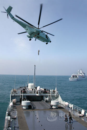 中印陆军联训出动直升机演练山地反恐作战(图)