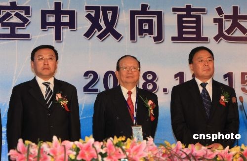 蒋孝严出席海峡两岸空中双向直达航路开通仪式
