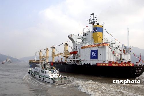 福建“金海缘”号将成首艘抵达台北散货轮。中新社发 王东明 摄
