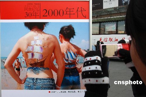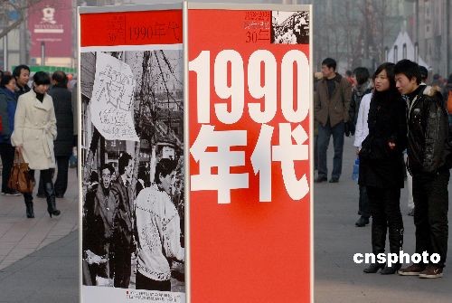 12月16日,纪念改革开放30周年全国摄影大展在北京王府井大街开幕。本次展览由“民生记忆30年”、“城镇记忆30年”、“家庭记忆30年”3部分组成,共展出摄影作品近800幅。其中“民生记忆30年”部分将中国自1978年以来的30年变革脉络,用百姓的视角、平凡的瞬间加以诠释与展现,还原质朴的生活。中新社发 郑雄增 摄