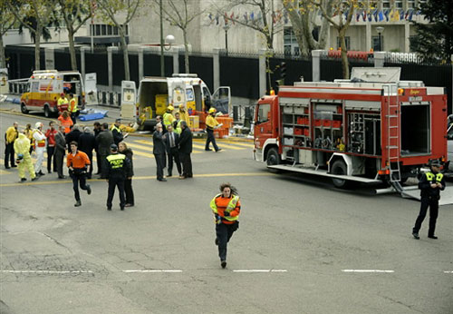 美国驻西班牙的大使馆当天收到了用信封装着的可疑白色粉末,西班牙特勤小组立刻包围了使馆,不过事后发现那些粉末并不会对人造成伤害。
