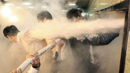 韩国议员爆冲突 使用灭火器当"武器"