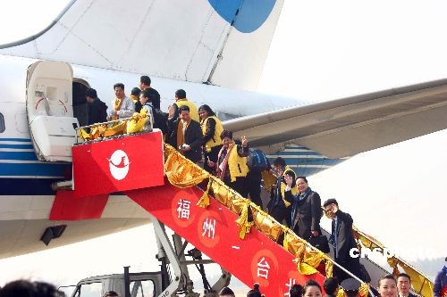 12月18日中午,由厦门航空公司执飞的波音757-200机型的MF883航班从福州长乐机场满载起飞首航台湾。中新社发 祝敏松 摄