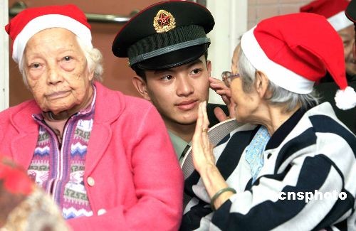 十二月十八日,解放军驻港官兵前往元朗博爱医院赛马会护理安老院慰问长者。