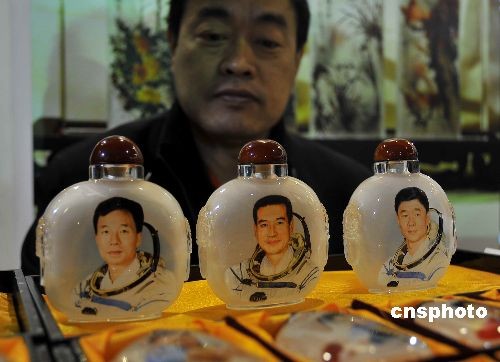 图:"神七"航天员肖像鼻烟壶亮相北京文博会