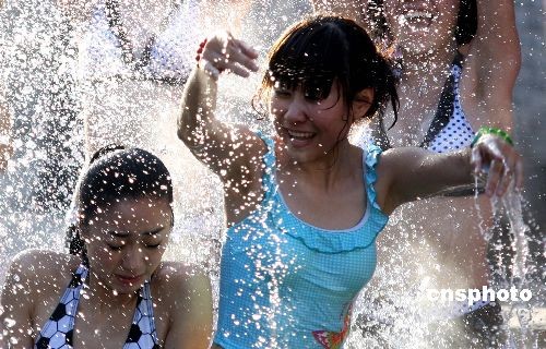 12月19日,参加2008国际职业模特大赛的30多名佳丽,在北京门头沟的室外温泉着泳装戏水。12月21日,她们将角逐本年度国际职业模特中国总决赛的桂冠。 中新社发 刘 龙 摄