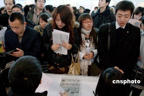 12月20日,“2008年农展迎新春人才招聘会”在北京举行。中新社发 郑雄增 摄