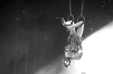 20日晚的成都寒气逼人,四川省体育馆内却是一番沸腾景象,蔡依林“唯舞独尊成都演唱会”在此热辣举行。歌坛小天后在成都展示的花样百出的舞台功夫,让人叹为观止——开场就是吊环,只见白幔缓缓落下,吊环上的蔡依林以蓝色性感舞娘装扮亮相,吊在离地足有两米多的吊环上玩男子体操的高难度动作,身下好几个男护卫严阵以待注意她的安全。记者身边的观众不断发出惊呼以及“她是不是在玩命”之类的议论。蔡依林的全套舞功展示,的确让她的成都个唱在众多巨星中显得独一无二。