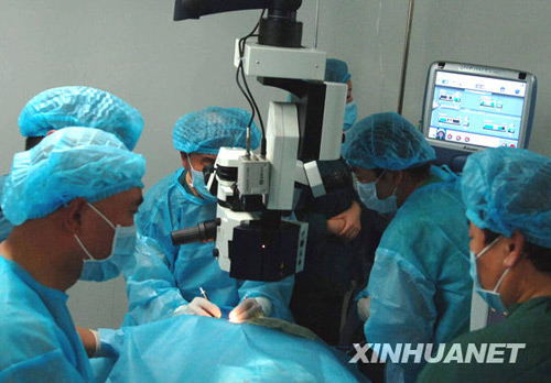 12月20日,西安古城眼科医院医务人员正在为大熊猫“小明”实施白内障摘除手术。新华社记者 陈钢摄