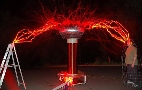 彼得·特伦来自澳洲西部的邦布利市,目前已是3个孩子的父亲。白天他的职业是医生,可是到了晚上,他便成了一名业余科学家,他最大的爱好便是在自己家中摆弄自制的“特斯拉线圈”——一种通过高频共振原理运作的变压器,制造出各式各样令人眩目的“人造闪电”,最高电压可达50万伏!通俗地讲,“特斯拉线圈”就是一个“人造闪电制造器”。其原理是使用变压器使普通电压升压,然后经由两极线圈,从放电终端放电。