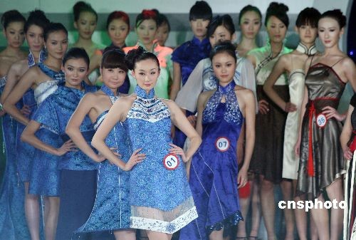图为参赛选手们展示旗袍主题装。中新社发 毛建军 摄