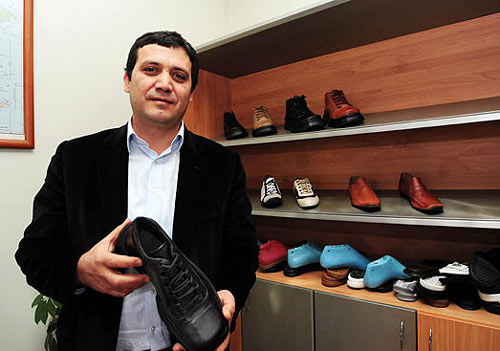 12月22日,在土耳其伊斯坦布尔,巴伊丹制鞋厂老板拉马赞·巴伊丹展示自己鞋厂生产的一款皮鞋。