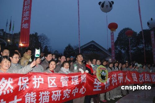 大熊猫研究中心工作人员欢送"团团""圆圆"