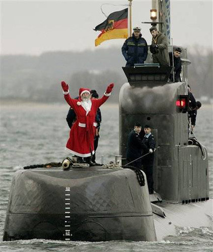 在德国,圣诞老人登上军方潜艇