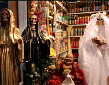 3.墨西哥索诺拉州的魔法市场:索诺拉州有一个魔法市场,这里聚集了一大批巫婆。巫婆们坐在自己的小店里,声称只要10美元就可以消除来者的贫穷和痛苦。这个市场很红火,客人有墨西哥当地人,也有慕名而来的外地游客。来这里的人走时都要带些令人生畏的东西,如神秘条幅、蛇血、干鸟,因为他们相信这些东西可以带来好运。