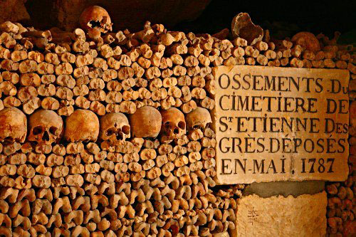 6. 法国巴黎的地下墓室:延绵178公里的地下隧道,埋葬了约700万人,骸骨都整齐沿墙排列,并标明死亡年份。墓室里的空气非常干燥,弥漫着尸体腐烂的味道。墓室本是石灰岩矿场,后因墓地爆满兼疾病爆发,于18世纪70年代开始葬人。